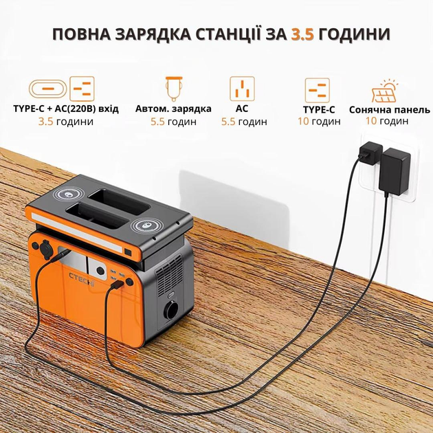 CTECHi 518Wh, портативна електростанція, 500Вт, GT500, LiFePO₄, power station, автономне живлення, сонячна зарядка, резервне живлення